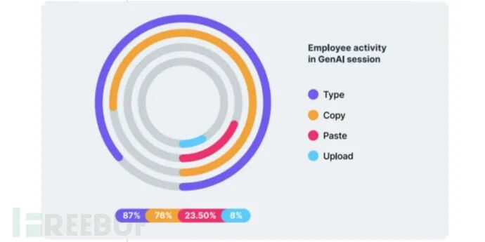 主要研究结果显示,4%的员工每周都会将敏感数据粘贴到GenAI中,增加了敏感数据外流的机会。