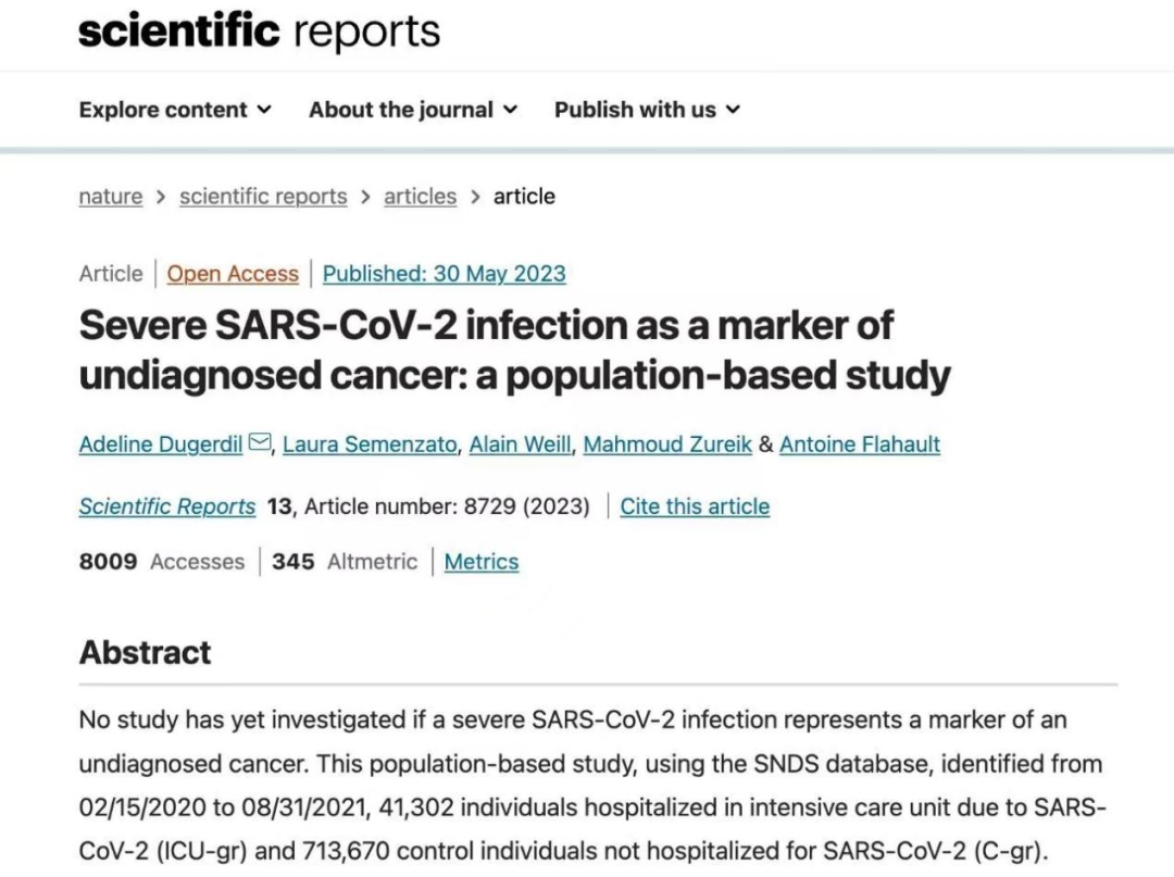 5月份新增的重症病例2777例,虽比去年同期有所下降,但这仍然是一个值得警惕的数据。而据一份权威的研究报告,新冠重症可能是未确诊癌症的标志。日前,英国权威期刊《科学报告》(Scientific Reports)一项最新研究表明,住在ICU的危重新冠患者出院后在接下来的几个月内被诊断出癌症的风险增加了31%,这项研究首次建立新冠病毒感染重症与未确诊癌症之间的联系。