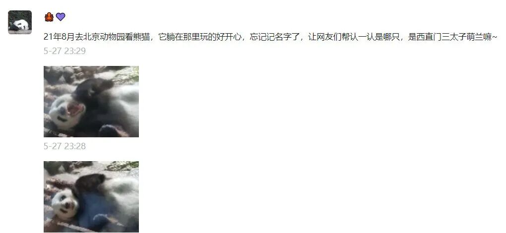 21年8月去北京动物园看熊猫,它躺在那里玩得好开心,忘记名字了,让网友们帮忙认一认是哪只,是西直门三太子萌兰嘛?