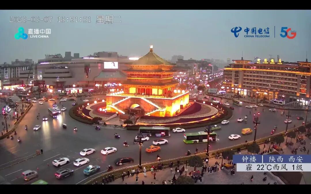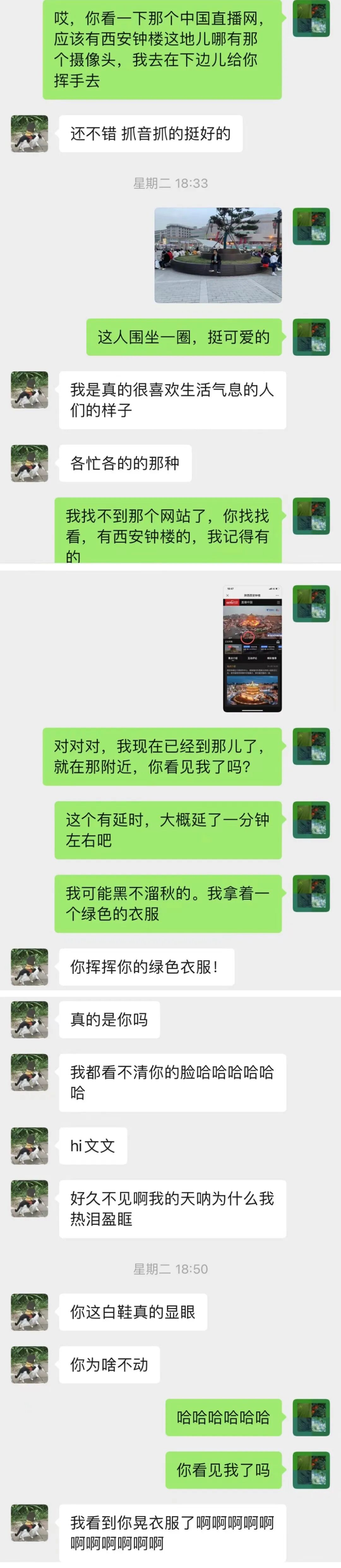 三月上旬因为想去看央吉玛的演出,所以去了西安。那天我到了西安之后,准备去钟楼那边逛逛,突然想起网站上有一个西安钟楼的直播摄像头,我就去找,她说要我在摄像头下面和她打招呼。