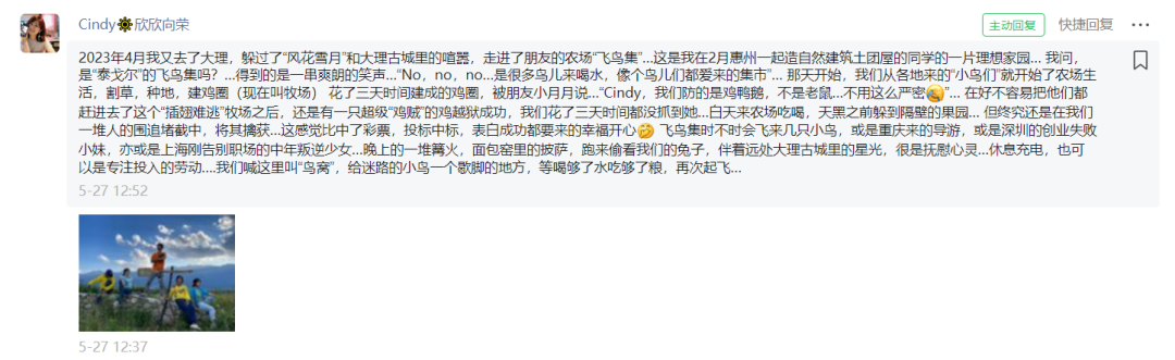飞鸟集时不时会飞来几只小鸟,或是重庆来的导游,或是深圳的创业失败小妹,亦或是上海刚告别职场的中年叛逆少女。