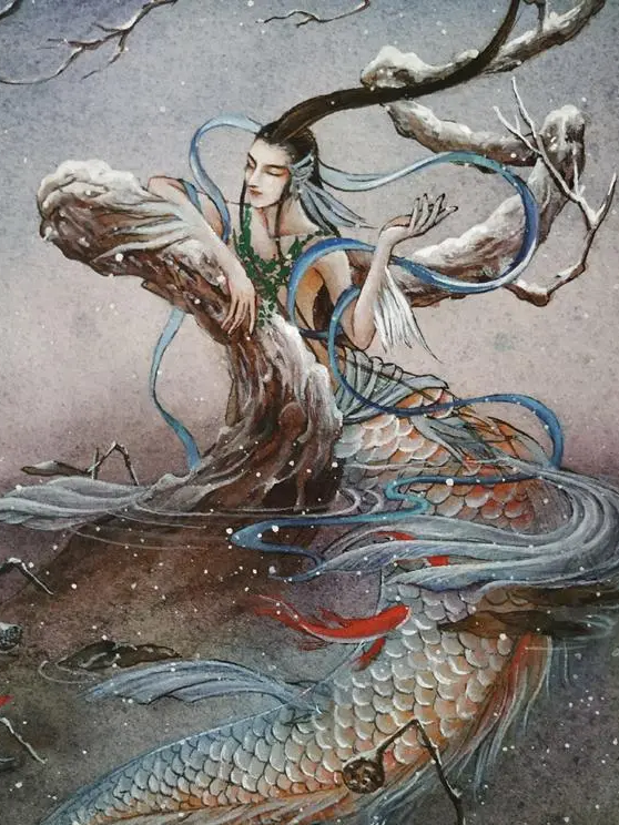 而《聊斋志异 白秋练》中的人鱼却与众不同,故事讲述了一只美人鱼的圆满传奇故事。主人公白秋练原是洞庭湖中的白鲟精,平生素来喜爱诗歌,暗恋上对月吟诗的少年书生慕蟾宫,相思成疾,只因少年书生为其吟诵王建《罗衣叶叶》一诗便觉心情舒畅,大病痊愈。