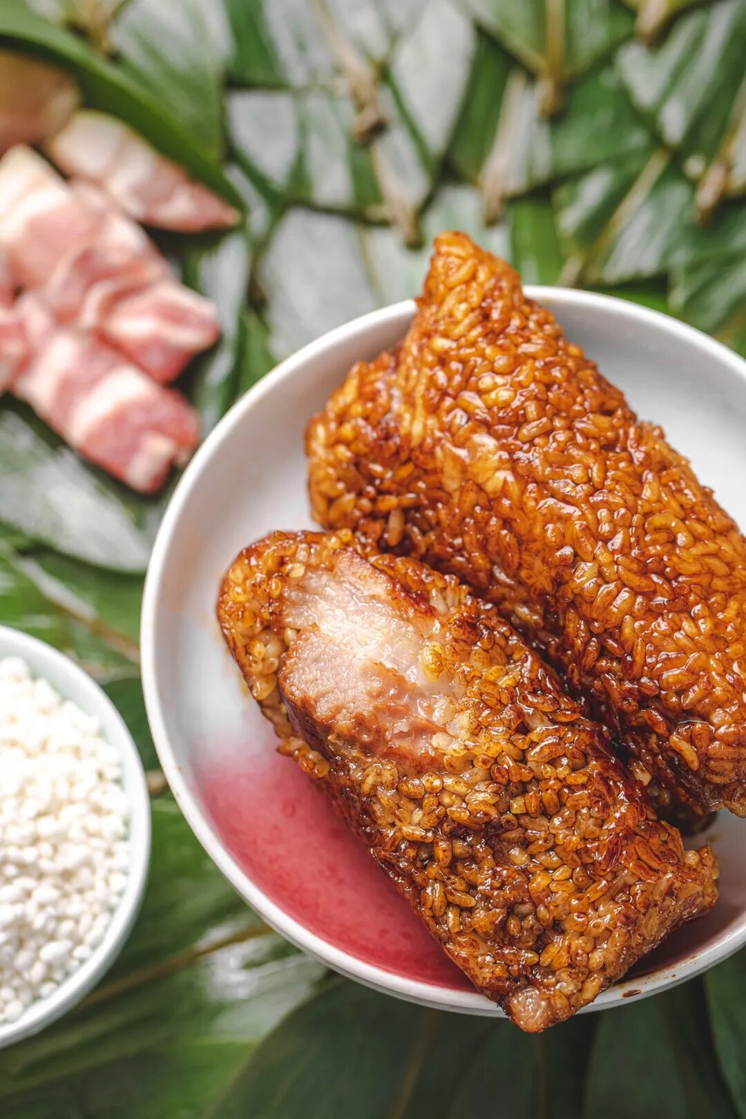 东坡肉本身就是江浙美食的重要符号,将东坡肉的肥瘦相间,香糯酥烂,融合进湖州枕头粽中。