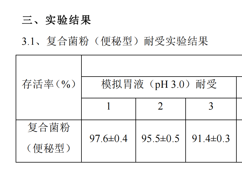 实验名称:拜耳复合益生菌菌粉耐受胃液及肠液实验