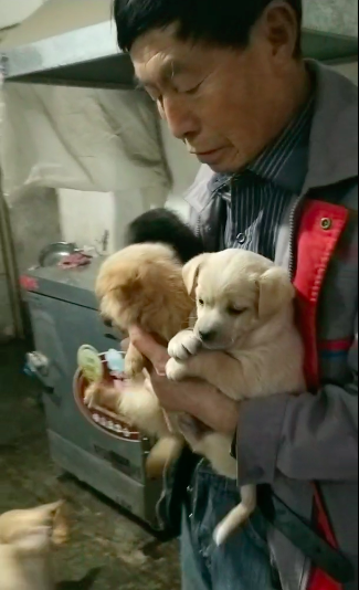 眼看着要下大雪,担心小狗挨不过去,刘振洪就把它们都抱回了家。