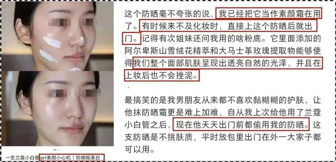 比如很多明星、护肤达人在亲自使用后纷纷大赞的“防晒扛把子”兰蔻小白管防晒霜。小白管拥有独家防晒专利,高倍力防晒且肤感轻透,防晒级别高达SPF50+、PA++++,UVA+UVB全波段防晒,简直就是防晒界的“天花板”,不仅能防晒黑晒伤,还能防肌肤老化呢。为了验证小白管效果如何,知名美妆博主、时尚博主BLACKBAB专程去泰国,顶着烈日在户外晃荡一天,让大家见证小白管防晒力到底有多强。这位博主早上8点全脸涂了兰蔻小白管出门,晚上10:30回到酒店,明显发现没有涂防晒的手臂比脸部黑了不少,晒了一天的脸却和早上出门时并无太大区别。![]()