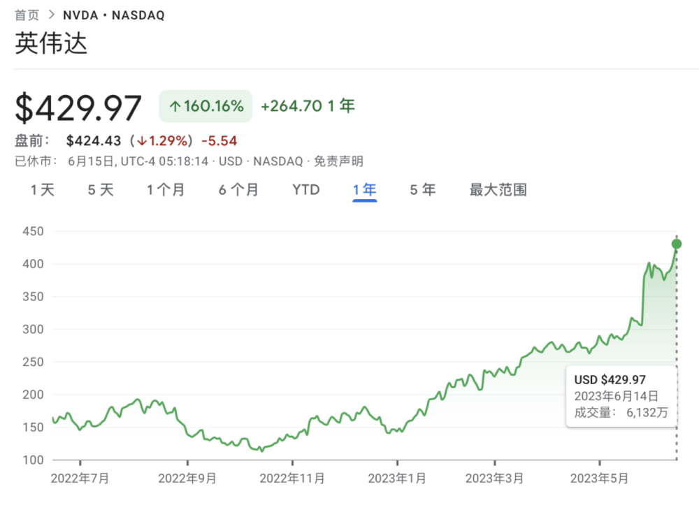 ▲ 英伟达近1年市值变化。图片来源:Google财经