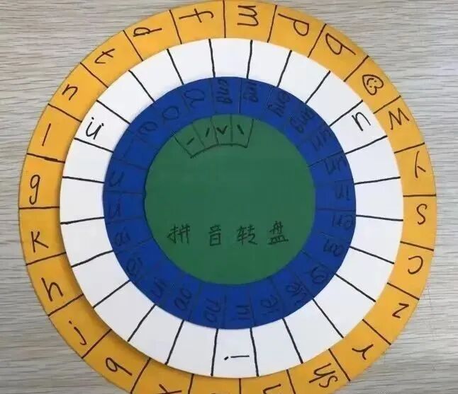 将声母、韵母、声调分别写在一个圆盘上做成大转盘(如下图),学生通过转动大转盘将声母、韵母、声调组成可拼读音节进行拼读,每人转动五次转盘,对随机组合的音节进行拼读。