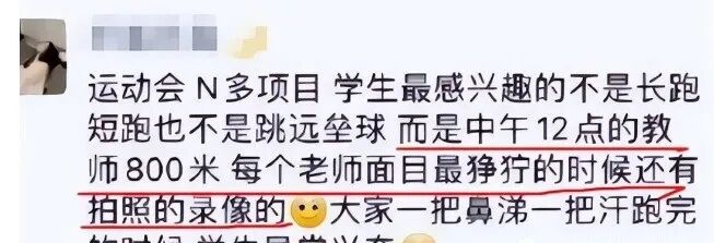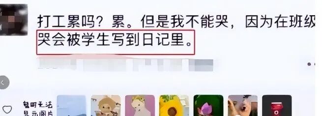 信息时代,科技带来新的沟通手段,相隔万里也能及时了解他人的新动态。很多人通过朋友圈来表达自己的想法,教师也不例外。很多教师,尤其是年轻教师经常将与学生之间发生的各种事情发到朋友圈,既有分享乐事,也会表达自己的烦恼。这位教师就遇到一件让他觉得离谱的事情,也不知道在学生心中教师是一个怎样的形象,但是教师也是普通人,是有爸爸妈妈的,而不是石头缝里蹦出来的。怕老师可能是所有人的共通点,即使毕业多年,即使自己也成为教师,但是当面对其他教师批评学生时,总会产生站在那里的是自己的感觉。多年学生熬成师,但也改变不了教师留下的“心理阴影”,这位教师在办公室里听到批评害怕得只能对自己打气,可见教师威力。教师这一职业虽然承担着教书育人的崇高职责,但是成为教师的其实也是普通人的一员,和所有打工人一样,会为工作感到疲惫。这位教师的遭遇令人同情,虽然工作累,但是也不能哭,因为会被学生记在日记里,但是他可能也没有想到,发朋友圈也会被学生截屏学生各有不同,即使是同一个教师同一年级,也分为学霸和学渣,作为教师,想必很多人以学霸为荣,但也对学渣感到无可奈何。这位教日语的老师的朋友圈,用西游记的一段话,生动地表达出自己的无可奈何:闯祸了别说是我教的就行了。经历过考试之后,大部分学生的状态都是:知识点教了吗?教过了;上课学会了吗?学会了;考试对了吗?没有。这让很多教师感到迷茫,到底应该怎么解决?这位教师看起来被学生的考试成绩气得不轻,什么都教了,当时都会了,最后成绩让人晕厥,字里行间都能体会到他的不容易了。学校运动会是每年十月份左右的必备项目,而且不仅是学生可以参加,大多学校也会为教师准备专门的项目。事实上,无论是学生自己的任何比赛,总会看到观众台上有几个昏昏欲睡的人,但是至于轮到教师比赛时,所有学生瞬间清醒,腰不酸了,腿不疼了,觉也不睡了,兴奋异常,这位老师的分享简直是人间真实。教师并非不食人间烟火,更是普通人的一员,也有喜怒哀乐。