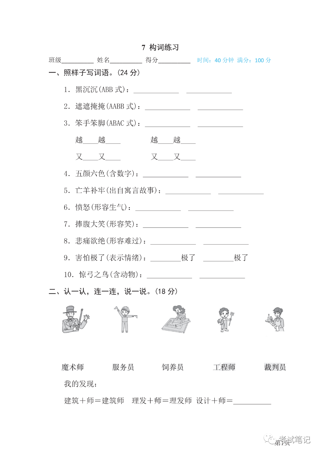 三年级语文下册:构词专项练习,常见词汇及考点!