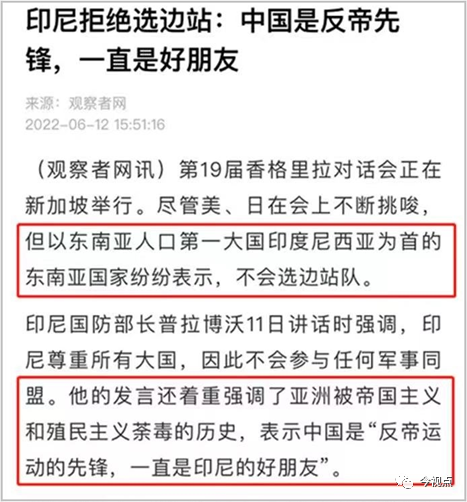 而印尼这种就更直接,一边说着不选边,一边说中国是反帝的先锋,这脸打的,谁在亚洲搞帝国主义呢?
