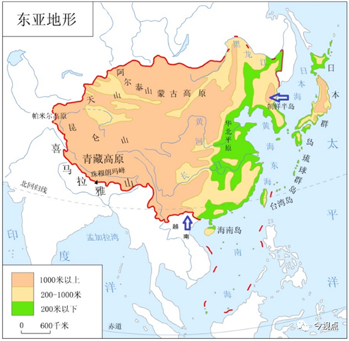 可以看到,我国北部是戈壁、沙漠和高原,西部是沙漠,西南是高山、高原,这些都是大屏障,就算在今天,也是难以进攻的天险。