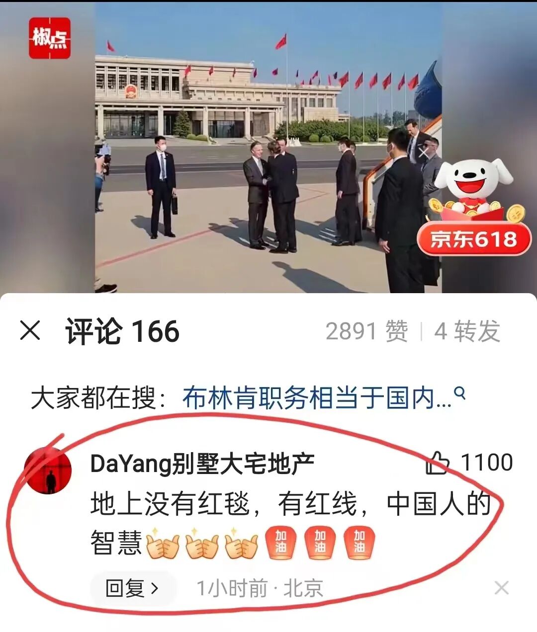 细心的小伙伴会发现,布林肯这次访华没有红毯,但脚下却有一道红线。