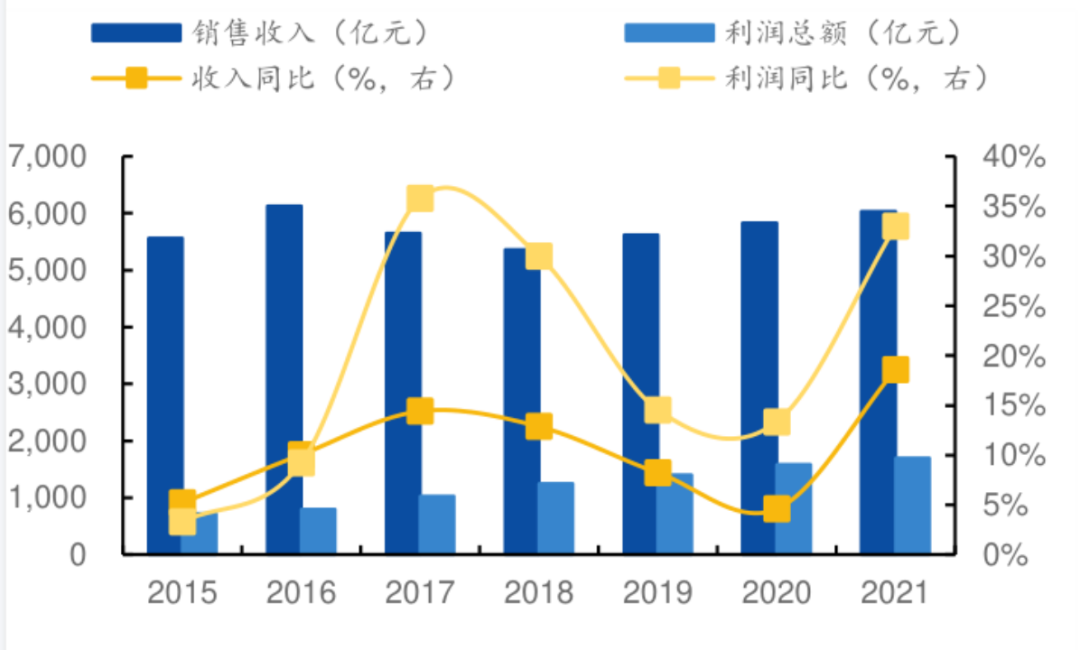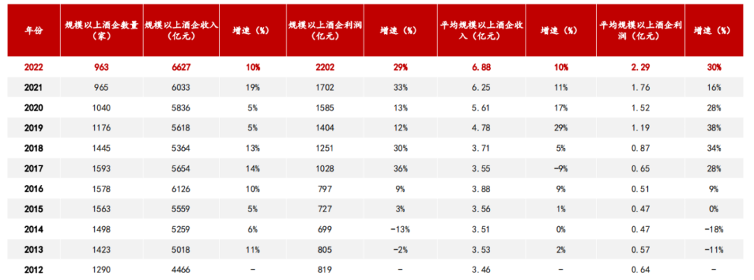 根据数据显示,2016年以来,白酒产量持续缩减,到2022年已经降至672万千升,产量缩减的背后伴随着销量的下滑;但与此同时,行业的营收规模却持续扩张,利润水平不断改善。
