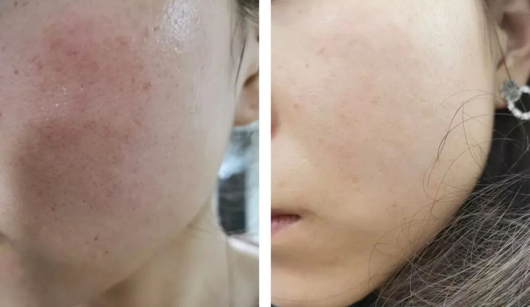 ▲左图医美后当天,右图是使用赫莲娜后的隔天