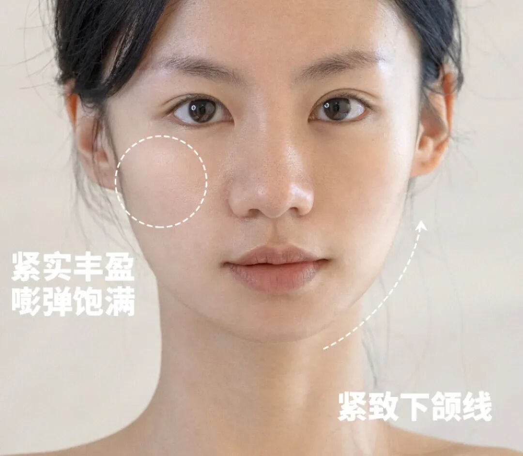 肌肤看起来更加饱满膨润,连下颌角的线条都能直接往上提拉,看起来明显更年轻。