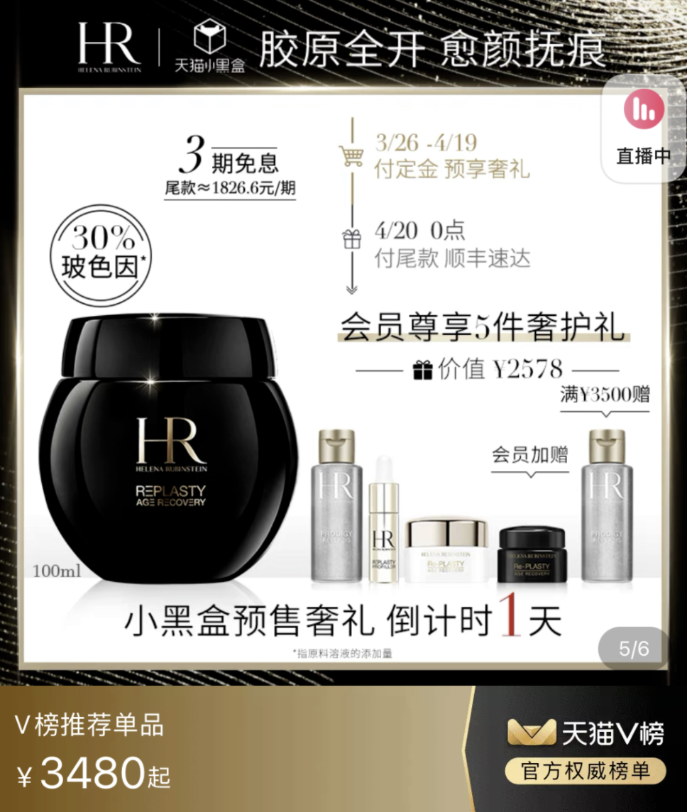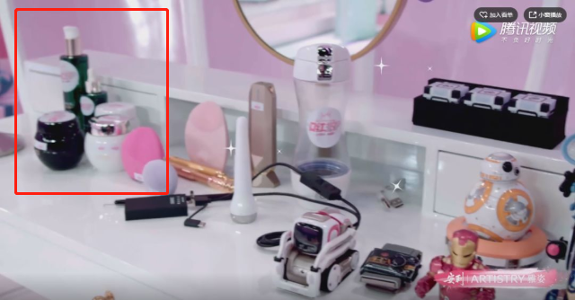 张韶*的vlog中,化妆台上捕捉到大大的赫莲娜黑绷带