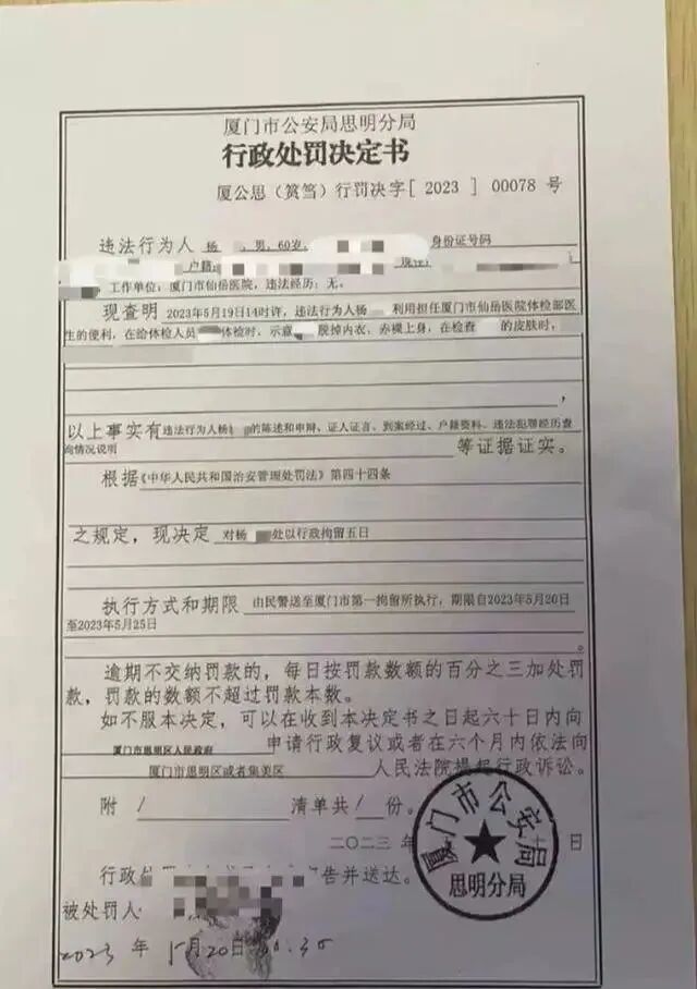具体到本次事件,杨某趁着体检,违背黄女士的性意志,对其隐私部位动手又动嘴,而且是肌肤之间的触碰,这种情况是非常恶劣的,所以警方对杨某作出行政拘留处罚,这并没有问题。
