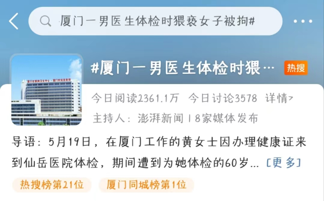 事情是这样的,5月19日,25岁的黄女士前往厦门市某医院进行例行体检,想要取得健康证。