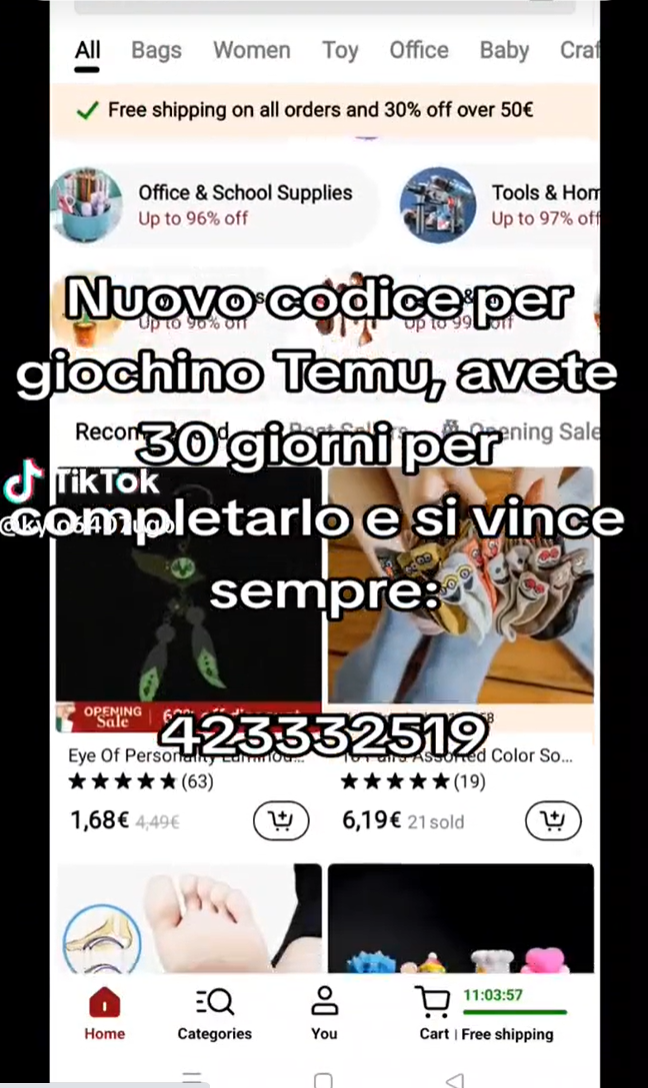 图源:TikTok文章开头的土味广告、在“超级碗”花1亿人民币投放的广告片只是TEMU烧钱营销的冰山一角,每到一个国家,拉人头获得奖励的“薅羊毛”狂欢必将上演。TEMU上线北美时,品玩Global就曾直言“没有任何一个地球人能完全抗拒羊毛的诱惑”。在Twitter、TikTok等社媒平台,随处可见晒出的TEMU邀请码,每人“砍上一刀”,拉几个人头,现金奖励即可到手。![]()