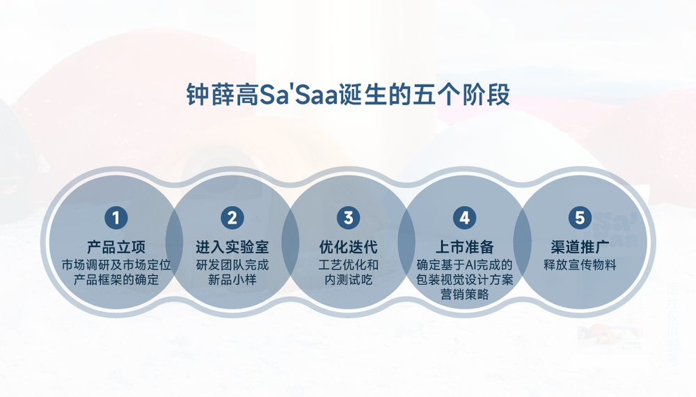 2023年一季度,Sa’Saa完成了上市准备。此时基于AI完成的包装视觉设计方案、营销策略也已经确定。钟薛高开始向所有的渠道和经销商推广Sa’Saa,并开始释放宣传物料。