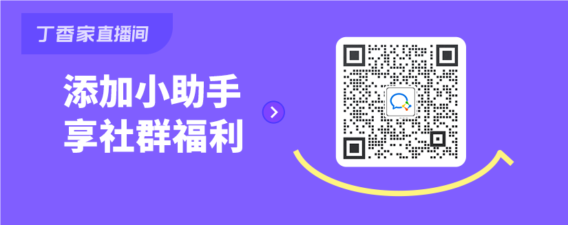 最后的最后,一定记得添加我们的丁香福利官,加入我们的【丁香家粉丝福利群】,第一时间了解更多直播优惠,还有价值【200 元新人券包】一键 Get ✔ !