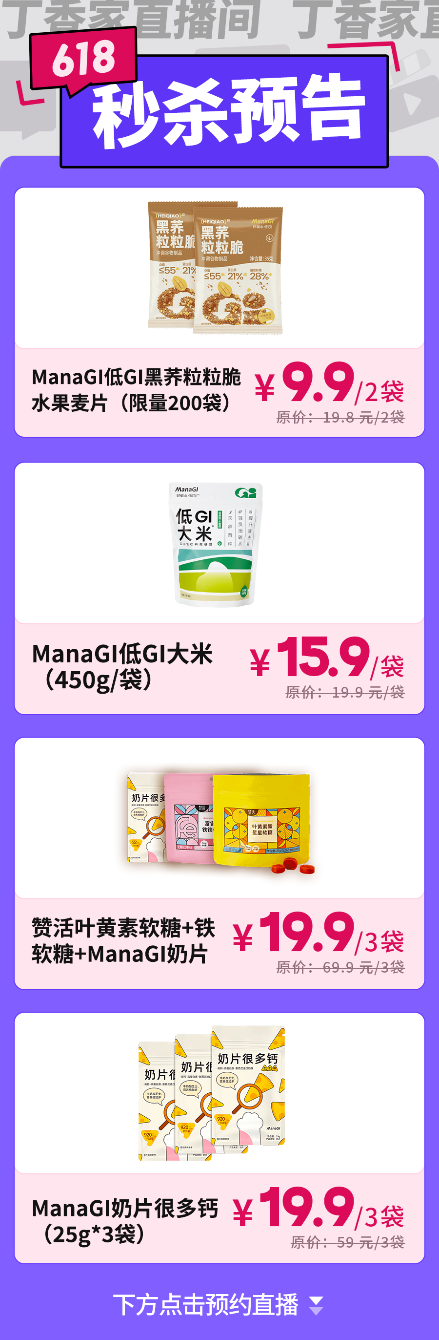 丁香家自研低 GI 好物专场,直播结束,优惠就没有啦!!!