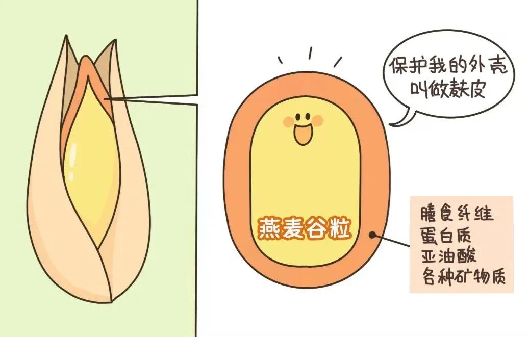 所有谷物都有自己的麸皮。一粒完整的燕麦应该包含燕麦谷粒(胚芽、胚乳),燕麦麸皮,和燕麦壳。