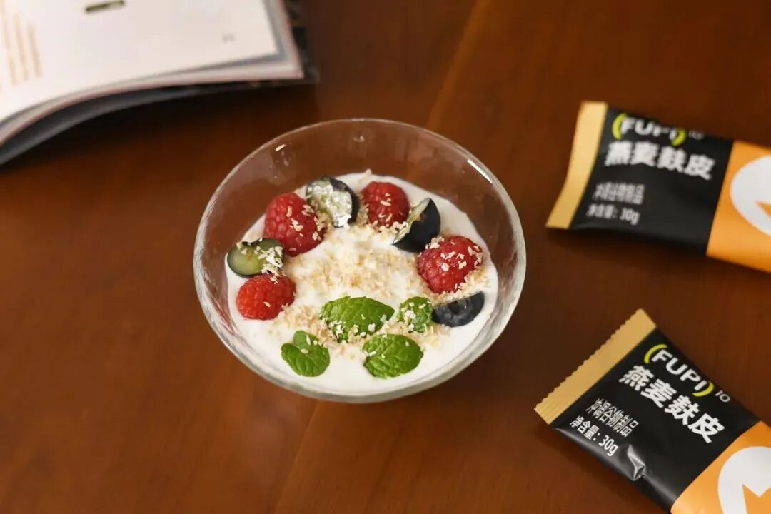 不管家里有什么水果、坚果,都可以和麸皮一起往里酸奶里怼。