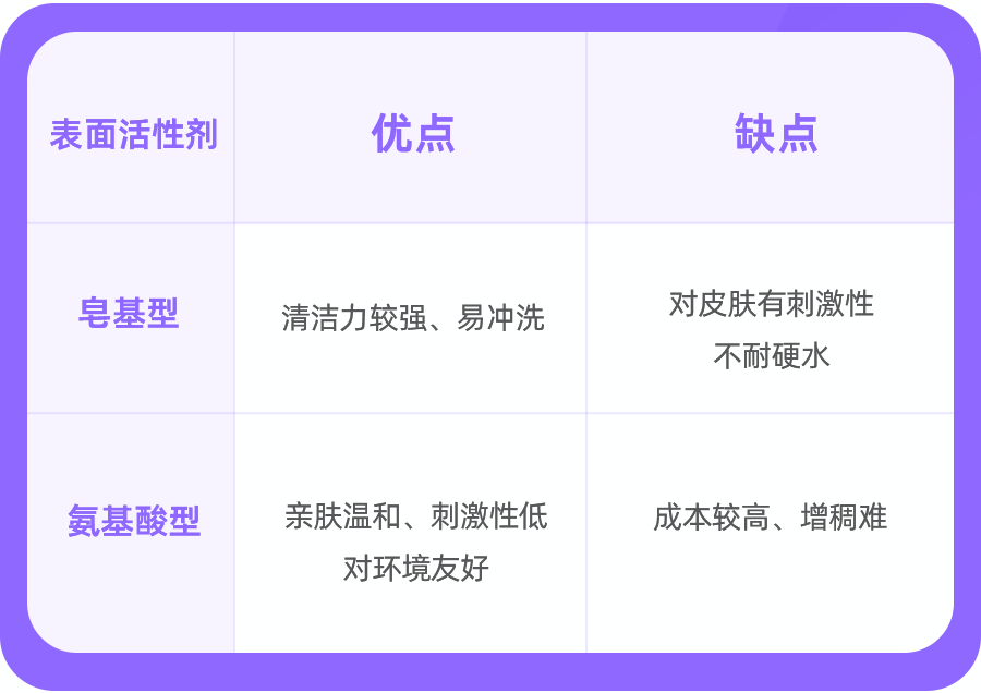 整体来讲,皂基型起泡性好、清洁力强,氨基酸型温和亲肤、保湿滋润。