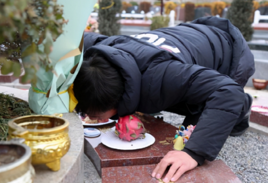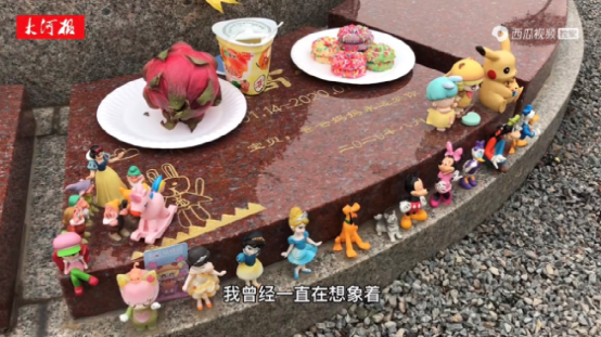 他会经常买女儿爱吃的小零食,放在墓碑前。