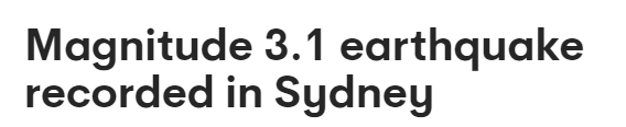 澳洲七号台新闻6月18日报道称,周日下午,悉尼西南部发生3.1级地震。