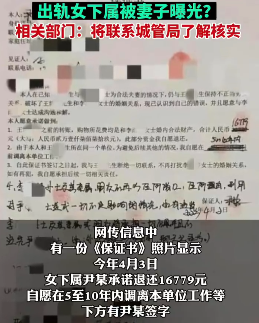 听到自己的女下属这么说,城管王大人立马继续讨价还价,“那可能是因为没给吃奶吧。”女下属对这样抬头吃奶,转头忘了喊妈的东西表示很无奈,只能感叹:“行了,就当之前的喂狗了”……字虽少,但暴露的信息量很大,之前还吃了不少,但还欠下了不少债,有待继续努力“沟通”……然而,令网友们没想到的是,这仅仅是开端,后面的聊天,更黄更暴力。另一张聊天里,或许是城管干部“吃奶”得逞后,竟然还想打女主屁股!好端端,又没犯错,干嘛打人家屁股呀?女下属似乎非常气愤地反抗道,你敢?但没料到,这并未震慑到经常活跃在“打人”场合的城管王大人,他直言说,脱了衣服打……脱了衣服打屁股是什么玩法?城管王大人把暴力用到了女下属身上,这玩得也太那个了吧……而一番“调情”之后,不愧是见过大世面的城管大人,竟然想出了更华丽的招式——“明天试试爵士的床?”有钱人的世界还真是花样百出哈,“爵士的床”又是什么?比大S和光头之前睡的,汪小菲买的那个价值几百万的高级床垫的床,还要高级么?只是不知道,到底哪个才能彻底活动筋骨,释放精力呢?对于这个答案,恐怕无法得知。但唯一可以确信的是,女下属的技术,城管干部非常满意,不然也不会说出“全身上下没有不想的地方”。而对于城管干部的“创新招式”,女下属也非常喜爱,不然不会骄傲表示,“你居然隔着这么远还在馋我的身子!”如此大胆赤裸,日思夜想,这对狗男女,还真是厚颜无耻,没脸没皮了!然而,就在全网声讨之际,有网友扒出,这名女下属,可比我们想象中更放得开!果然是高手!难怪她能将城管干部拿下,确实有些过人的“本领”啊。和之前“成都爱情故事”里的董小姐一样,看来想要攀高枝的女下属,都深谙这种职场“升职器”的威力吧。随着更多猛料扒出,却愈发发现,这个女下属真不简单。按照城管夫人的爆料,女下属并未单身,而是已婚状态,并且,根据聊天记录显示,她和城管干部早在2022年间就搞上了,经常保持“沟通”……早前,已和城管干部育有一女的她,在外出差没回家,等忙完后,她准备偷偷提前回去,给城管老公一个大大的惊喜。当夫人到家门口,敲了半天门,却始终不见城管老公开门,难道是发生什么事了?就在她疑惑之际,突然,一个女子从家里嗖的一下冲了出来,一溜烟跑走了,逃跑的姿势估计和前几天广东高校在车内出轨的那位卓处长差不多,看下图卓处长的姿势,就能脑补出城管女干部逃跑时的妖娆……光天化日之下,还有女小偷?但又看着不像啊?夫人赶忙问城管老公实情,但他就是不愿说,只说是“普通朋友”。呵呵,普通朋友,普通朋友会见着女主人就跑?事出反常必有妖,城管夫人于是趁着老公没注意,拿他的手机一看,果不其然,有奸情!她看到的,正是开头曝出来的那些令人惊掉下巴的大尺度聊天。当然,聊天记录里,也有证据,证明王大人服务很到位,不仅邀请对方到自己家,还经常送X上门,还嫌不够……城管王大人的夫人立马找到这个女下属,经过一番论战和交谈之后,已婚又搞别人家老公的女下属败下阵来,答应写一份《保证书》,主要包含以下几个信息极大的点:1.女下属知道城管队长有家庭,但依旧与其保持不正当关系。2.城管队长一边和她交流“俄罗斯方块技术”,一边给她转账并花费了(大写是贰万壹仟柒佰柒拾玖元,后小写改为)16779元。3.害怕事情暴露,女下属会在5到10年内,调离与城管干部一起工作的单位。