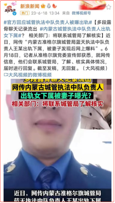 但男主坚持认为自己有功,因为自己“昨天X的时候我就感觉到不对劲了”,还说“昨天X的时候我就感觉到有不一样的感觉。”可想而知,女主角此前一定经历过一番深入浅出地“沟通”,让女主不太通畅的问题通了,而且还要迫不及待地交流总结和提升经验,也是属于“技术流”,可谓是勤学苦练“志同道合”的好同志。据报道,事件男主是内蒙古准格尔旗城管局蓝天执法中队负责人王某,被“一炮通好姨妈”的女当事人,则是这位城管队长的下属尹某。城管上下级沟通很正常,但两人沟通的“深度”着实令人瞠目结舌,“沟通”的语言也着实太黄太暴力,在这方面的沟通造诣,连著名的西门大官人都要自叹弗如,自惭形秽!“劲气”大意是劲头十足,气势旺盛,用在这里大概不是表扬女下属工作劲头足,大概是表扬对方“沟通”的愿望强烈,要了还想要的意思……当然,老司机懂的都懂,画面太污,咱也不敢描述了,如果不太懂,可以温习一下上次的柳州爱情故事,这里的场景和那里的“横着亲”有异曲同工之妙。男方果然懂得“沟通”,立马蹬鼻子上脸,顺势提出要求:“那我的天天吃,不能断奶。”双方这是在探讨“能量守恒定律”啊,毕竟,下面要源源不断地输出蛋白质,就需要上面不断地补充,天天吃,不断奶,才能保证输出有“劲气”!“食不饱,力不足”,若要日行千里,就得维持营养,城管王大人果然是行家里手,吃进去的是奶,输出的是蛋白质,如此才可以生生不息,长期维持“劲气”。谁知,女下属又很调皮,说:“你想天天吃,我还不想天天喂了”。城管王大人立马讨价还价:“那不行,嫩妈能白叫了?”我的天呐,居然叫女下属“嫩妈”,城管王大人果然“有奶就是娘”,这口味好重!女下属乘胜追击,表示王大人只顾着吃,没有叫,“吃上了也没听见你叫几声”……