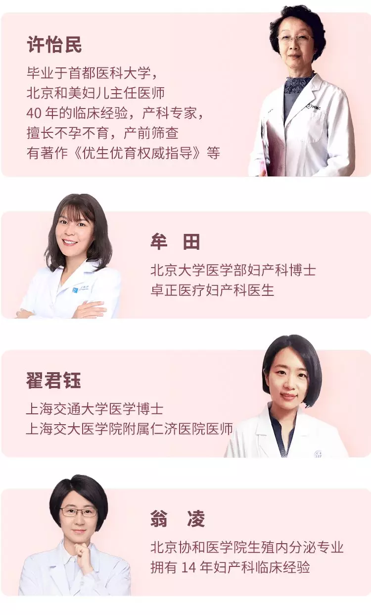另外,我们还邀请到了复旦大学附属妇产科医院主任医师和协和医院的副主任医师共同审核课程,为课程的科学专业严格把关。