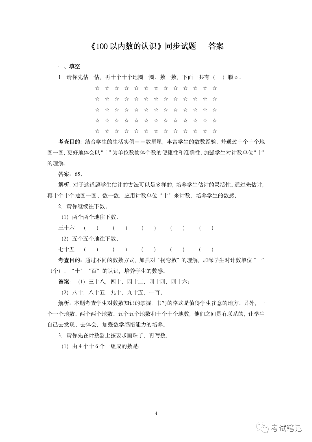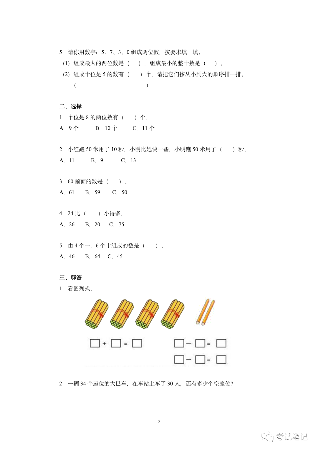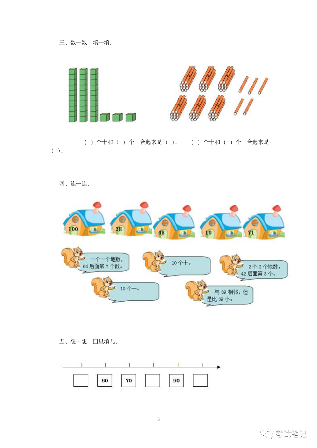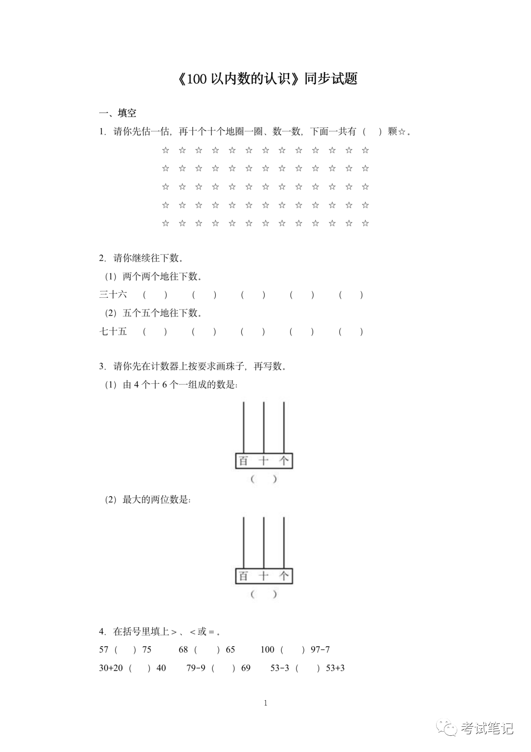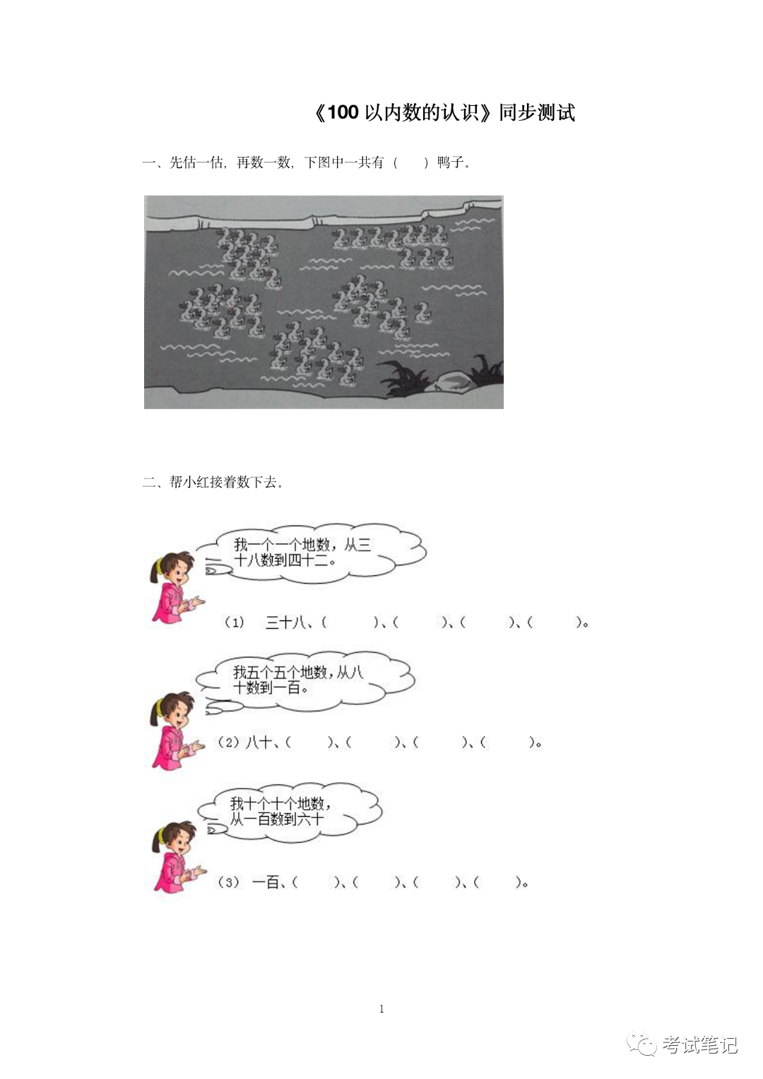 一年级数学专项训练:《100以内数的认识》同步试题共2套,适合孩子练习、期末复习!