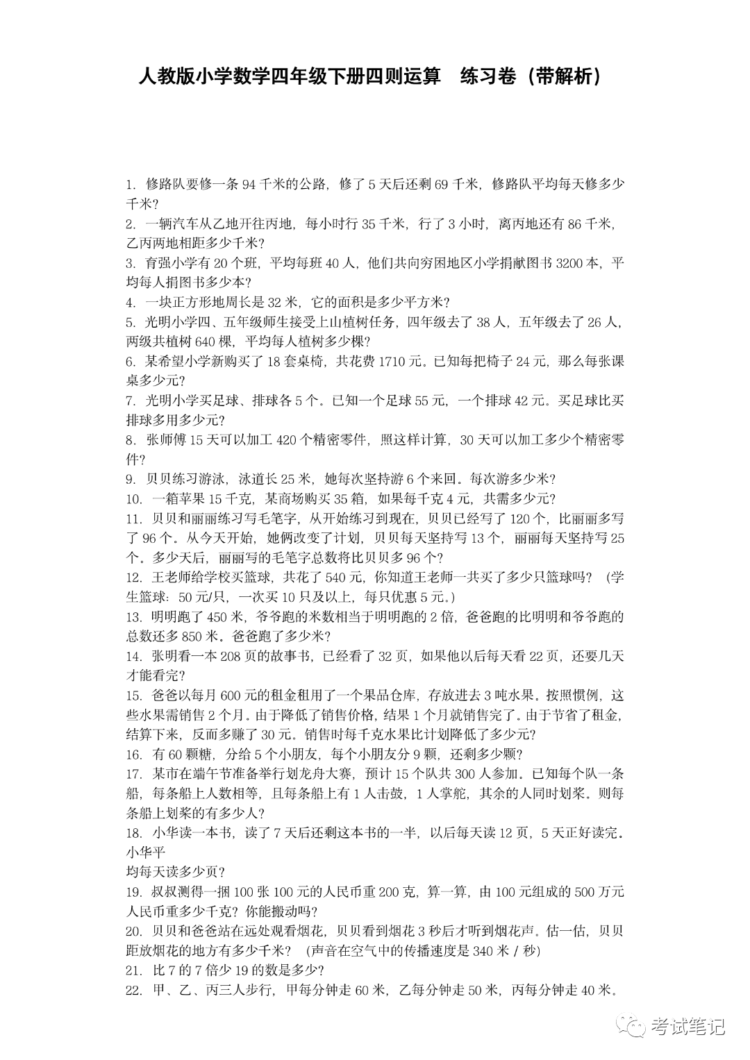 四年级数学专项训练:《四则运算》练习题,各种考查方式都有!