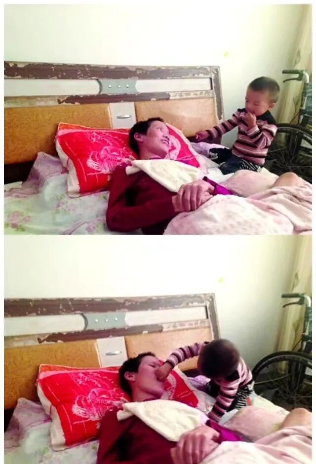 男孩的妈妈躺在床上,这是她变成“植物人”后的第三年。当年,在无意识期间,她生了下了儿子,一度生命垂危,多次被医生下病危通知书。