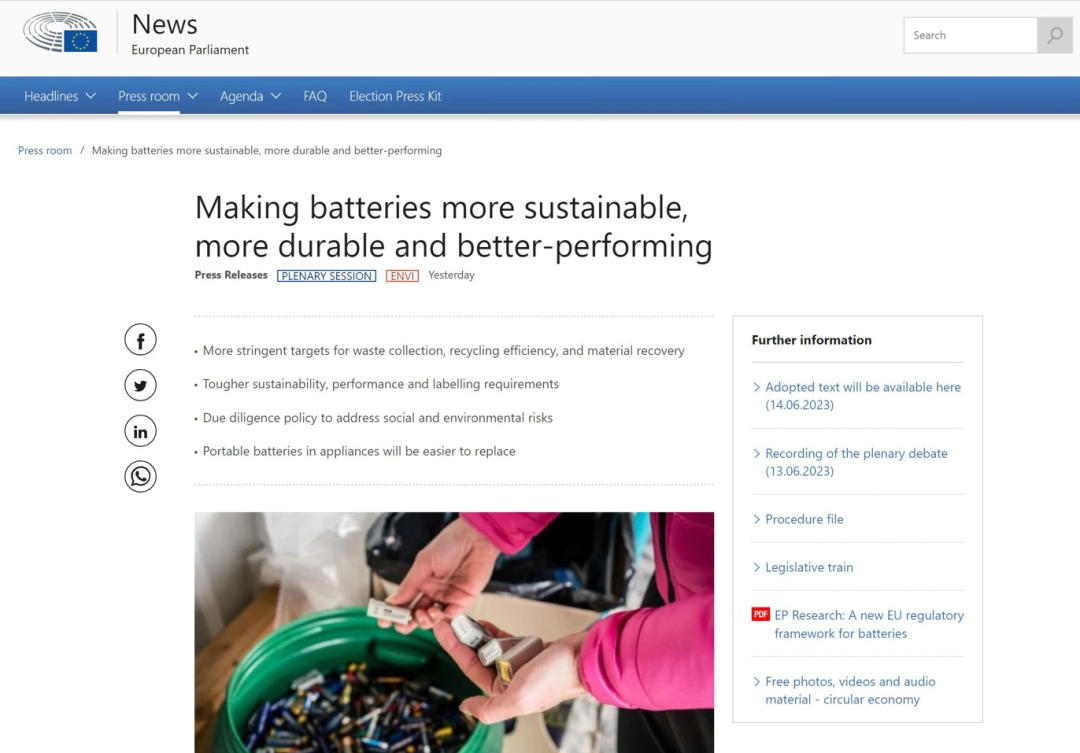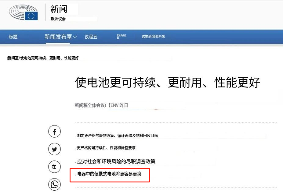 统一手机接口的事情刚刚告一段落,消费者又迎来了一个好消息:当地时间6月14日,欧洲议会以587票赞成、9票反对、20票弃权的结果,通过了2022年12月与欧洲理事会达成的关于《新电池法》的协议,该协议旨在完善《新电池法》中关于欧盟电池管理的相关规定。该法案中最引人关注的就是对电子产品的一项要求,即所有家用电器和消费电子产品中的电池都应该让消费者可以“轻松拆卸和更换”。