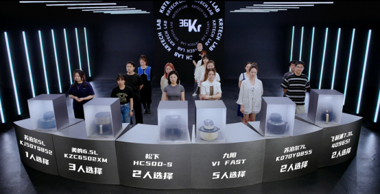 而在36氪调研结果中,用户关注的第二个点,就是口感。作为烹饪道具,空气炸锅显然要解决用户的味蕾问题。必须承认,口感和味蕾其实是一件相对私人的感官问题。但通过实验提取公约数进行量化后,也能大致给出一些可供参考的评价标准。就炸物而言,最影响口感的就是含水率。用更通俗的形容词,便是大众普遍喜爱的一口咬下、外酥里嫩直接爆汁的口感。因此,36氪将几台参赛选手统一送到了专业机构,由其通过国标测试方法,测量各台空气炸锅烹饪鸡翅的含水率。从报告结果中可以看到,九阳V1 Fast烤出的鸡翅含水率为62.9%,其次是松下的62.3%。其余品牌基本在60%以下。在数据作为评价标准之外,也需要用户视角。36氪由此组织了15位观众进行盲测,每一位观众都能品尝到6款空气炸锅制作的1只鸡翅,最后“用脚投票”,选择自己心仪的口味。显然,含水率数据的支撑,也是大众口味的共通。有1/3的用户直接选择了九阳。就实际结果来看,令人好奇的是,同样作为空气炸锅产品,同样也是烹饪鸡翅,为什么不同产品制作的口感与含水率相差巨大?在炸鸡翅的过程中,是否存在一些我们不知道的“秘密”?基于此,36氪又进行了一次测试,同时放置专业耐高温湿度传感计,记录不同空气炸锅工作过程中,内部温度湿度的变化。客观来说,速度与美味,应该是空气炸锅不太能兼得的熊掌与鱼。要快,就得足够高温,而高温注定会加速水分流失。要保持口感,就得保证一定含水率,更不能中途开盖来破话温度和湿度。九阳之所以烤得快又烤得好,一个很大的原因是温度上的能力。就测试结果看,九阳工作时内部温度在200-250℃,其余普遍在150-180℃左右。最关键的是,高温的同时,也保持着一定的湿度。加上无需翻面就能烤得均匀的能力,自然就能烤出一份好鸡翅。而基于其宣称的240℃远红外高温+高饱和蒸气锁水技术,九阳V1 Fast甚至能够实现不解冻就能烤羊排的便捷使用体验,的确让人惊艳了一下。除此以外,在厨房空间愈发狭小的当下,一台空气炸锅能够完成不同的烹饪工作,也是用户所期待的功能性。通过对比几款产品的实际功能,36氪发现就功能与菜单方面,基本相似,没有特别的差异性。但九阳V1 Fast在炸烤模式上稍有细分,设置了嫩烤、脆烤两种模式,还有无需解冻的预制菜模式来满足不同人的口味和使用需求。从用户视角而言,一款优秀的空气炸锅,应该要考量效率、口感、使用体验三个维度。基于这三点为消费者提供的产品价值,简单快速做出美味才是判断其是否优秀的标准。就今天的测试而言,空气炸锅产品的购买逻辑,并非越贵越好,而是好的产品,不一定贵,只是要先做好功课。