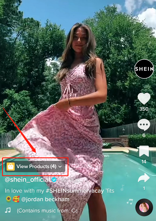而用户在看视频时,也会看到卖家放在视频上的购物小车,点击小车链接就可以去到购买页面。SHEIN-TikTok小店购物小车