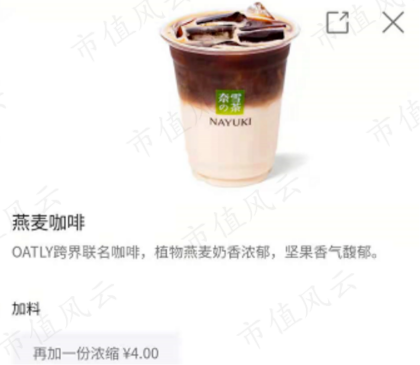 国内精品咖啡连锁品牌Manner Coffee、SeeSaw等咖啡品牌随后也在自家菜单上加入了燕麦奶+咖啡,推出燕麦拿铁等产品。