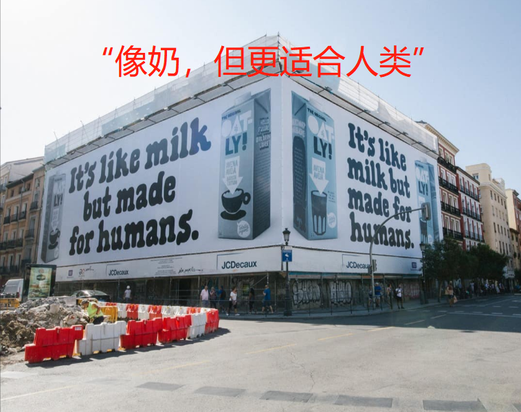 甚至Oatly打广告时还经常跟牛奶对撕,明里暗里讽刺牛奶既不健康、更不环保。气的一家瑞典乳制品集团起诉它破坏了牛奶的形象,结果Oatly当然败诉。但Oatly 牛就牛在,再糟糕的结果,都能拿来借势营销。Oatly 很聪明地利用这场官司,先把长达 172页的起诉书公布在官网上,说让消费者自己根据事实来判断对错。最奇葩的是,因为败诉,Oatly被规定再也不允许在广告和宣传中提及到牛奶的负面信息,结果 Oatly 干脆另辟蹊径,在网上发起了一场谷歌牛奶的活动。号召大家到网上搜索牛奶,看看牛奶是不是真的如你想得那么好。三番五次的折腾下来,CEO就在采访时候说到,虽然败诉,但Oatly 瑞典当地的销量直接上涨了 45%。环保+酷的态度吸引了一大批年轻人,他们开始收集燕麦奶的产品、穿上Oatly的T恤,把自己叫做“后牛奶一代”。环保这招在国外虽然好使,但对于从小听着“一天一杯奶”长大的中国人,基本等于无效。2018 年 ,Oatly 首次进驻 Ole超市 时几乎是无人问津,当时就有超市负责人吐槽:“这个产品是放在牛奶区,放在饮料区,还是放在早餐区,还是放在食品区?你都不知道你真正的身份属于哪个品类”。和其他植物性饮料比如豆奶、杏仁露相比,燕麦奶有个明显的优势:能做咖啡,可拉花打奶泡。