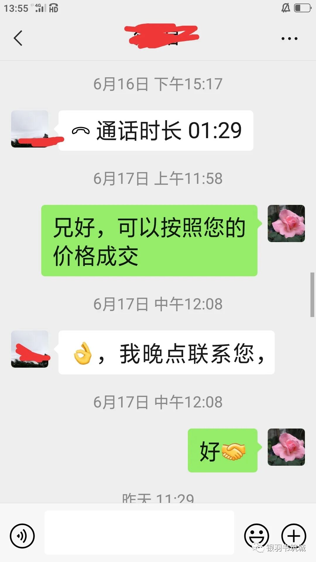 此事流程:5月24日书友添加微信,5月31日咨询价格,6月3日接续,6月10日通话,6月15日接续,6月17日我认可对方报价......