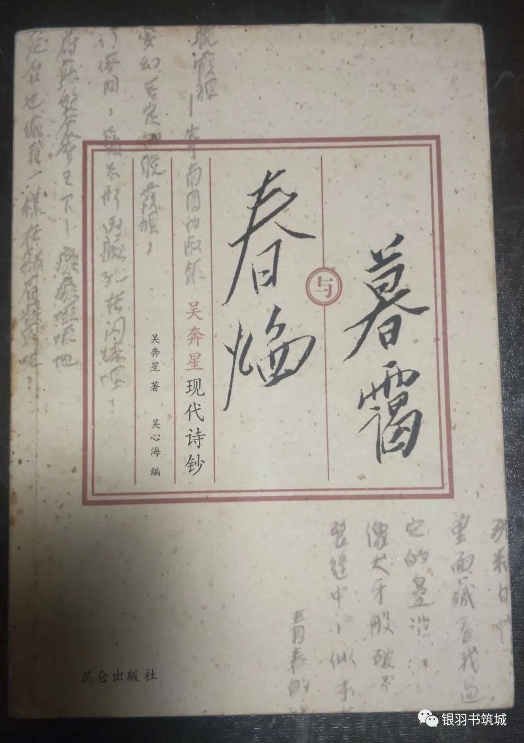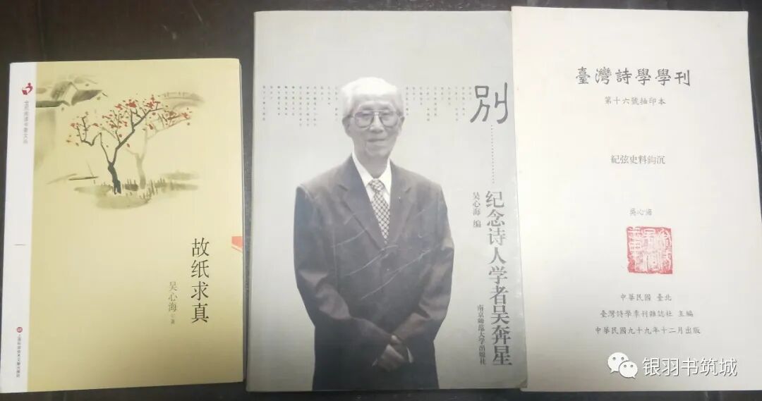 《暮霭与春焰:吴奔星现代诗钞》(编者吴心海 签名赠送本)(17元,其中运费8元),入书市最初得到的名家手迹就是吴奔星先生诗稿,为此见到了吴心海先生,第一回见家属还真是有点不知所措,吴心海先生完全不在意,很专业的相机一通拍照,送我《别 纪念诗人学者吴奔星》,一册《纪弦史料钩沉》(台湾诗学学刊第十六号抽印本),至今,吴奔星先生诗稿仍然完完整整在我手上,后续增加了信札与签名本,收到这本《暮霭与春焰》,翻阅之下,是一本用心之作,蕴含史料极其丰富。