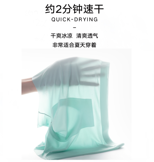 这种面料不但降温散热快,而且它还具备比一般面料强的2倍以上的导湿排汗性能!非常透气,从此告别闷热湿潮,时刻保持清爽不闷。