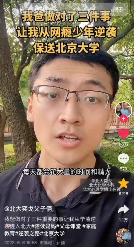 倘若,奕爸爸当年心平气和的“静等花开”,恐怕儿子很难踏入北大校门,说句不中听的,能不能考上大学都不好说。