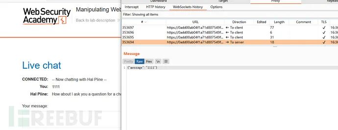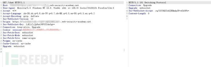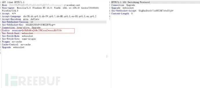 在live chat中首先验证websocket是否存在csrf。可以看到仅仅依靠cookie来进行会话处理,说明存在漏洞