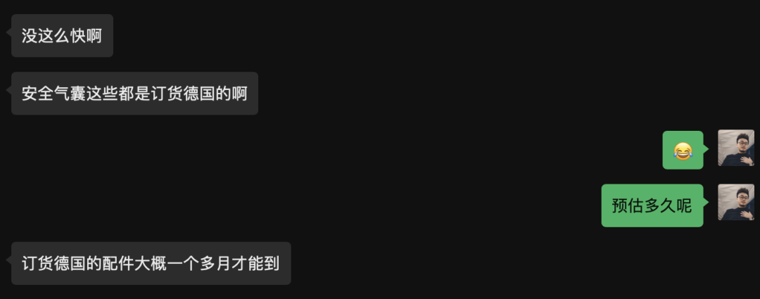 而且很多配件都要从德国订货,大概得一个多月才到货。