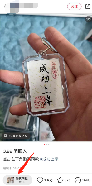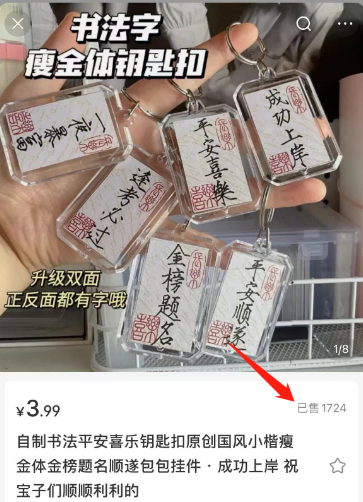 随手拿起钥匙扣,对着它就是一顿咔咔拍,然后再配上一个“成功上岸”的话题,最后再把钥匙扣挂到自己的商铺里。